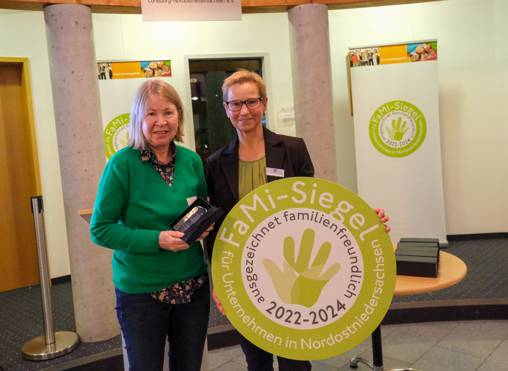 Alle drei Jahre verleiht die Gemeinschaftsinitiative Familien-Siegel, kurz FaMi-Siegel, Preise für herausragende Beispiele familienfreundlicher Personalpolitik. In der Gemeinschaftsinitiative haben sich unter anderem Überbetrieblicher Verbund Frau & Wirtschaft Lüneburg.Uelzen e.V. und die Leuphana Universität Lüneburg mit verschiedenen Verbänden und Kammern zusammengeschlossen. Insgesamt 115 Unternehmen aus neun Landkreisen und Städten in Nordostniedersachsen tragen das seit 2009 ausgelobte Siegel zurzeit, neun von ihnen erhielten am 12. November 2024 den FaMi-Award bei einer Feier in den Räumen des Arbeitgeberverbands Lüneburg-Nordostniedersachsen.